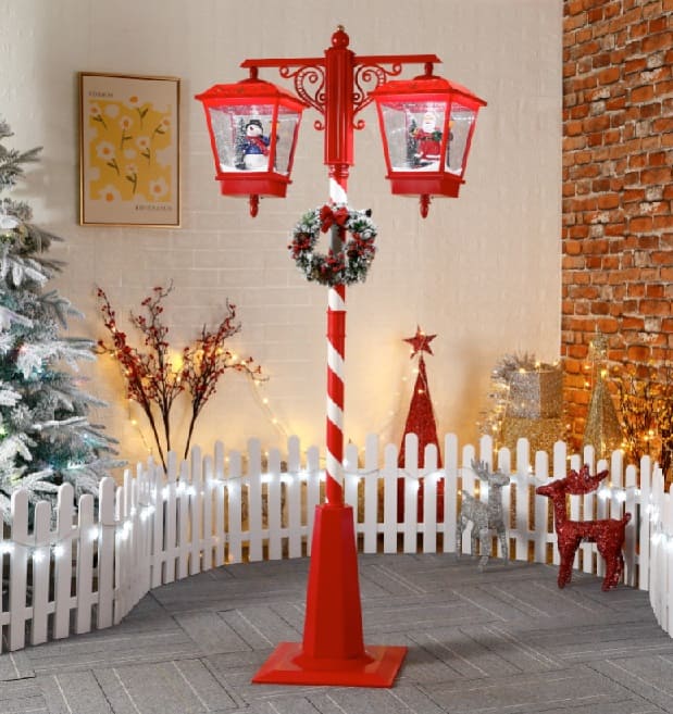 Lámpara de pie navideña LED con luz de nieve y música, adaptador UL de 4,5 V CC (incluido).